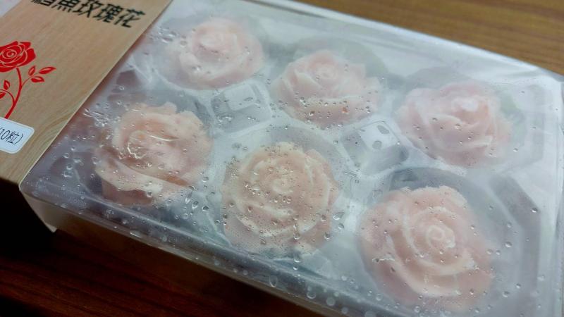 - 將新鮮鱈魚漿製成逼真玫瑰花造型的火鍋料